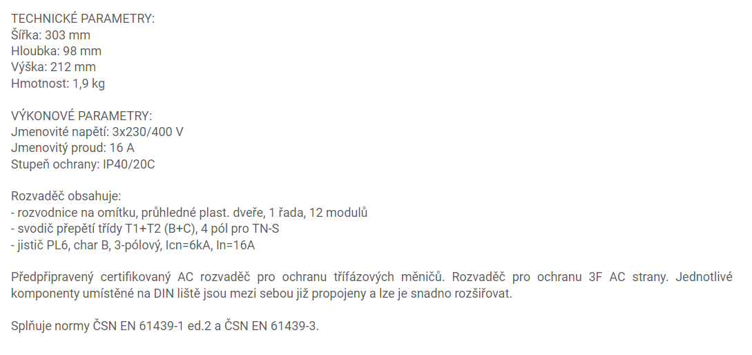 AC3F-M4 rozvaděč 303x98x212mm, pro FVE systémy
