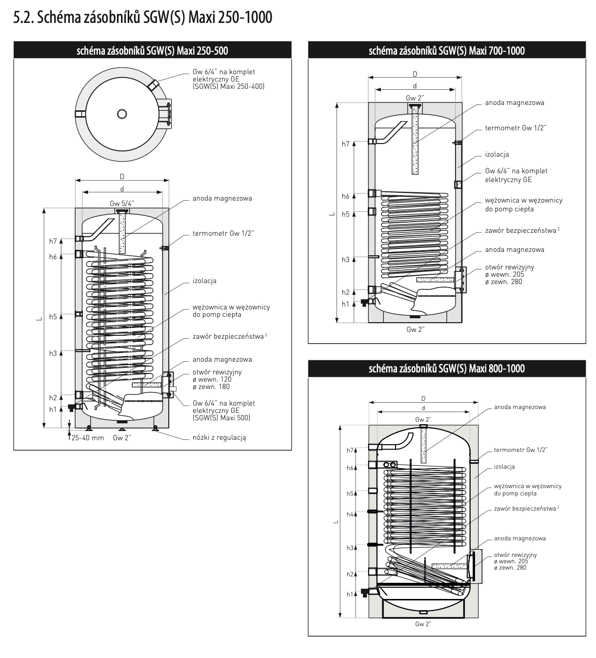 - výměník Maxi - velkokapacitní výměník určený pro tepelná čerpadla - možnost montáže elektrického tělesa - volitelné - teploměr v základní výbavě - kvalitní keramický smalt EXTRA GLASS® - ochranná magneziová anoda