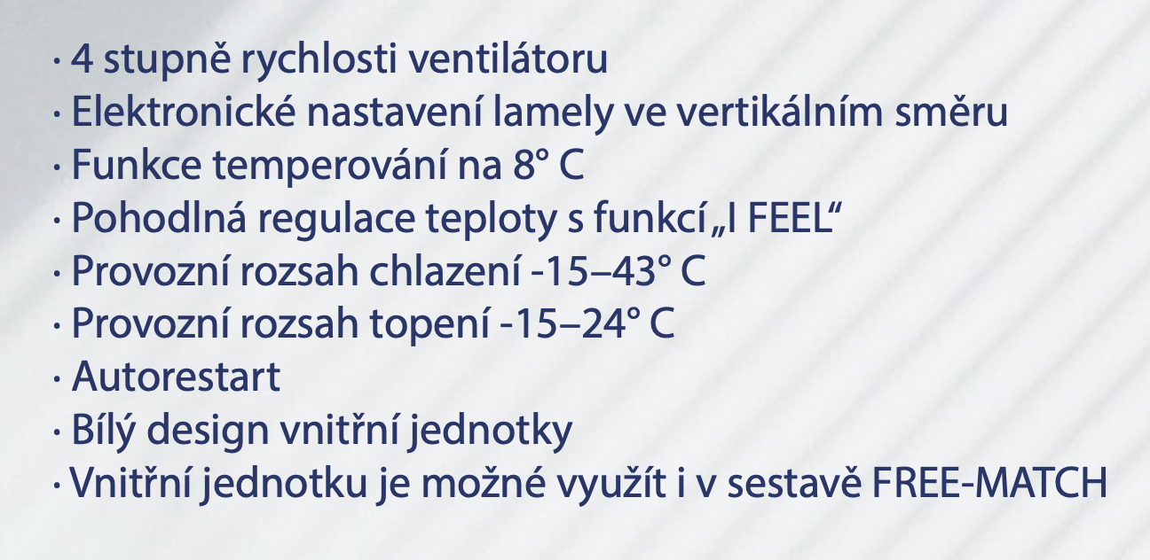 - jmenovitý výkon chlazení/topení 4,6/5,2 kWSEER / SCOP: 6,1/4,0