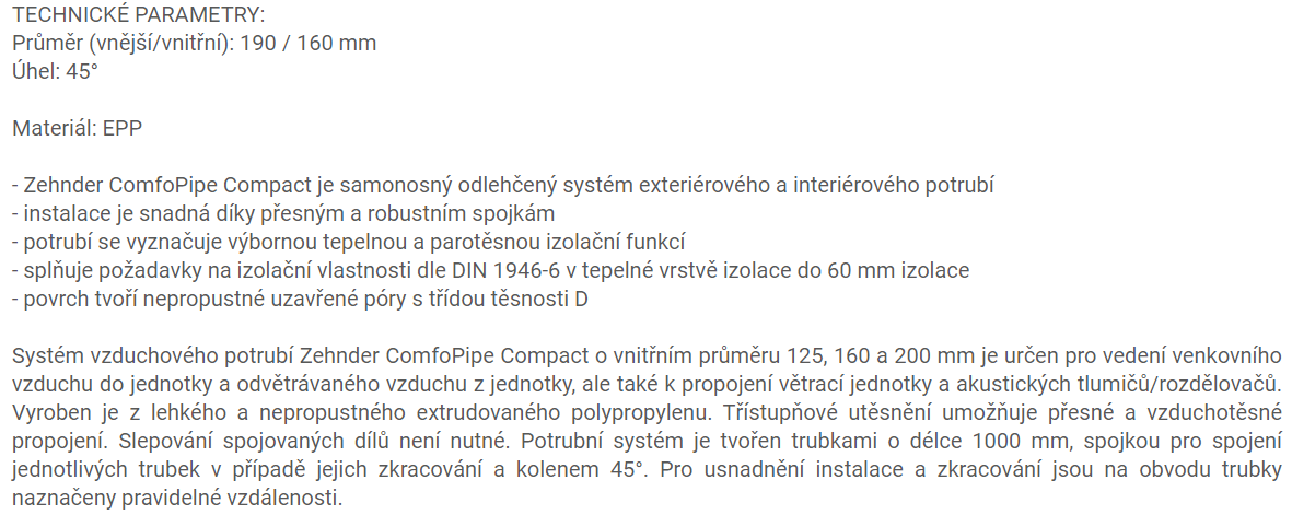 ZEHNDER COMFOPIPE COMPACT koleno 45° DN160