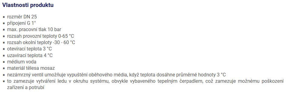 108 nezámrzný ventil 1", PN10, pro tepelná čerpadla, voda, mosaz