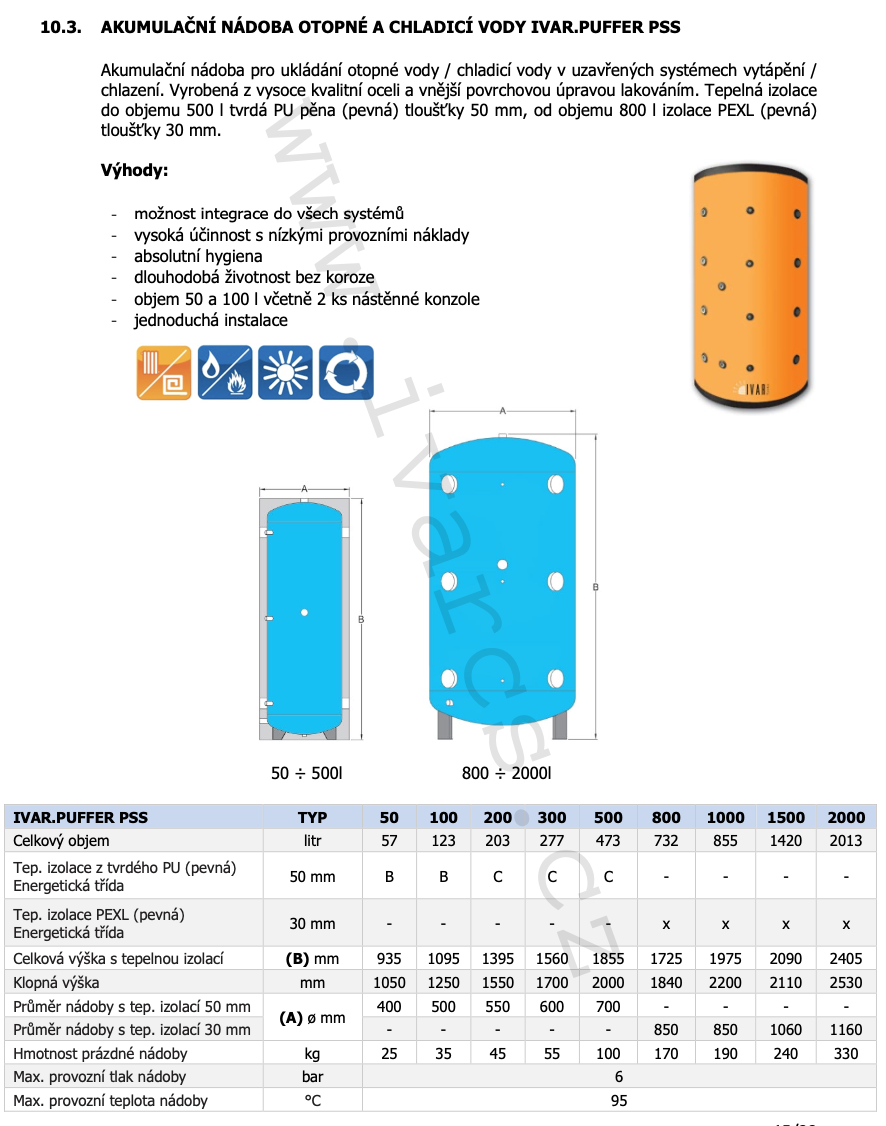 Akumulační nádoba IVAR.PUFFER PSS 100 akumulace otopné a chladicí vody - 123l