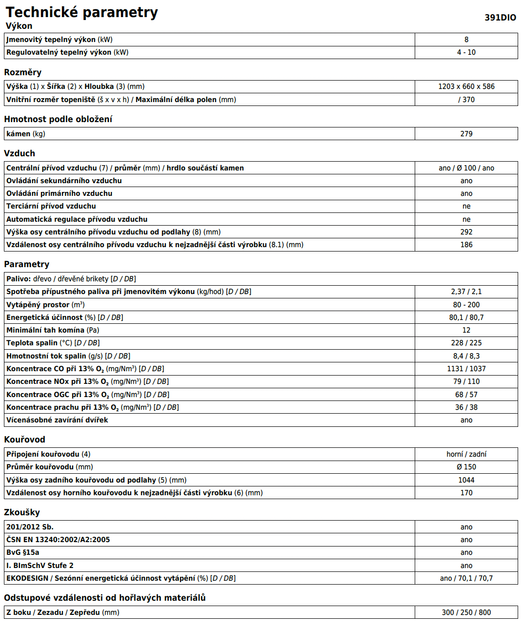 | Palivo: | kusové dřevo, dřevěné brikety |