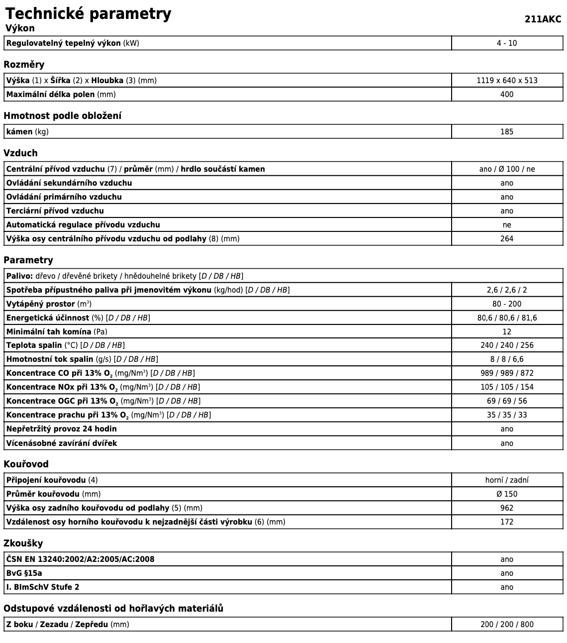 | Palivo: | kusové dřevo, dřevěné brikety |