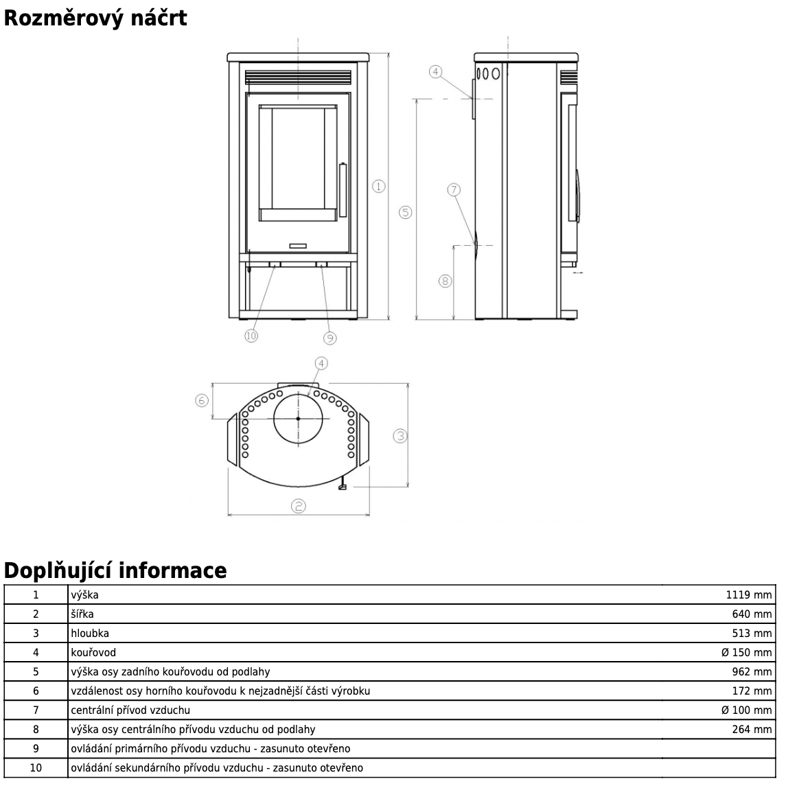 | Průměr kouřovodu: | 150 mm |