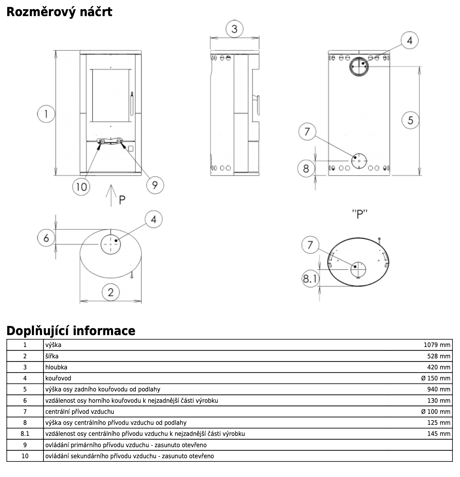 | Palivo: | kusové dřevo, dřevěné brikety |