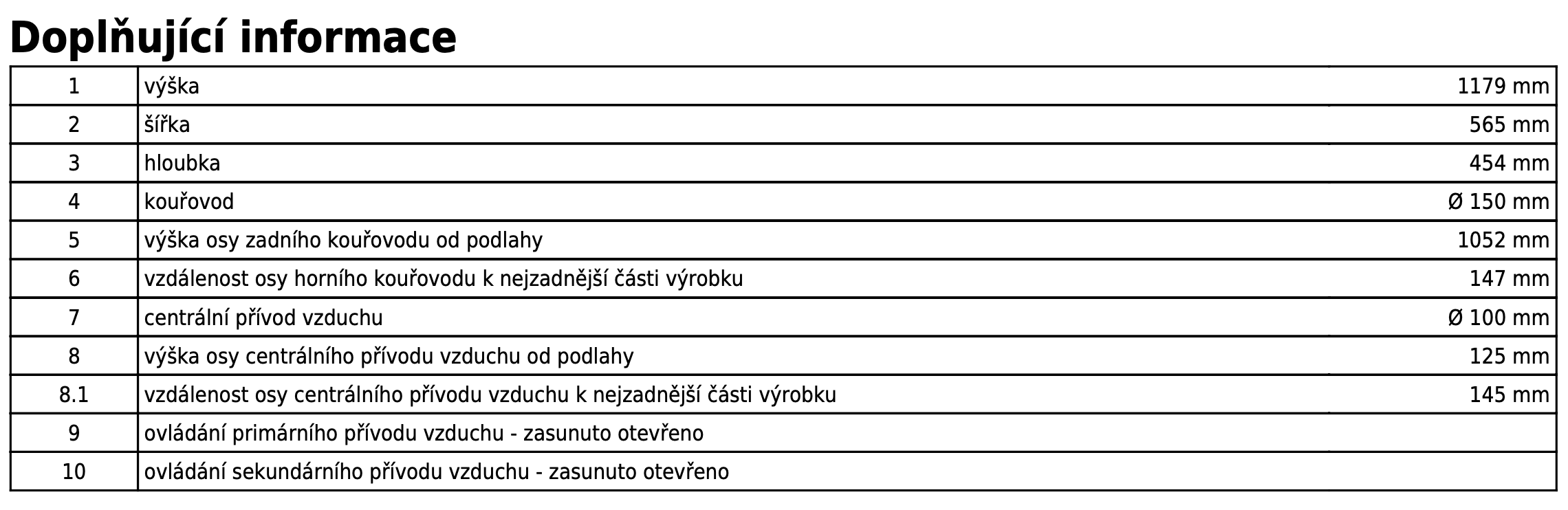 | Průměr kouřovodu: | 150 mm |