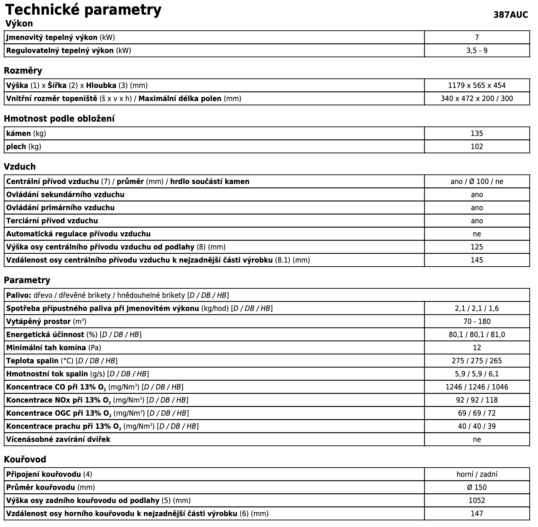 | Palivo: | kusové dřevo, dřevěné brikety |