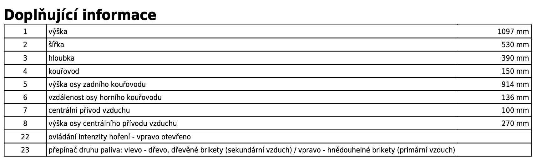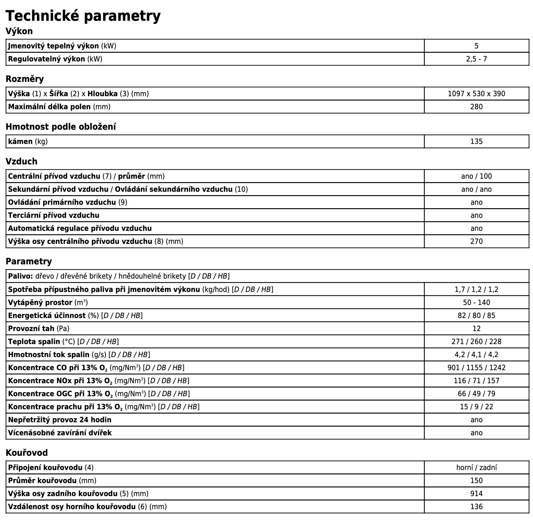 | Průměr kouřovodu: | 150 mm |