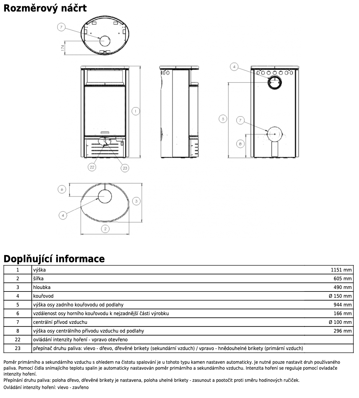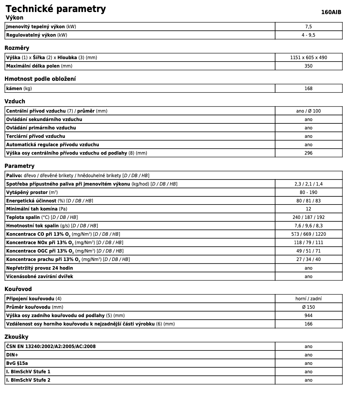 | Průměr kouřovodu: | 150 mm |