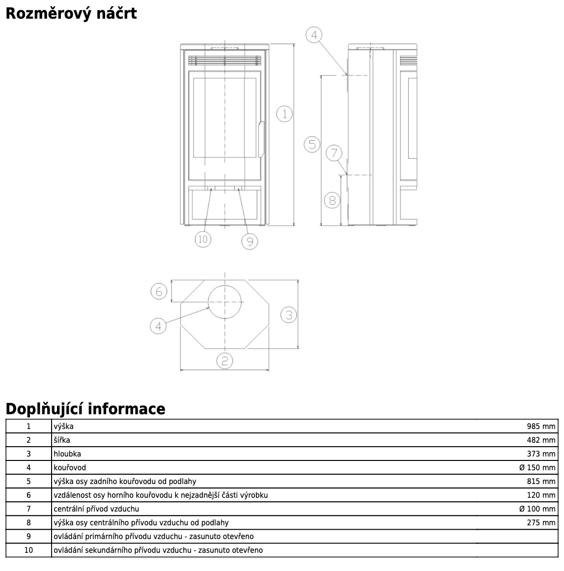 | Palivo: | kusové dřevo, dřevěné brikety |
