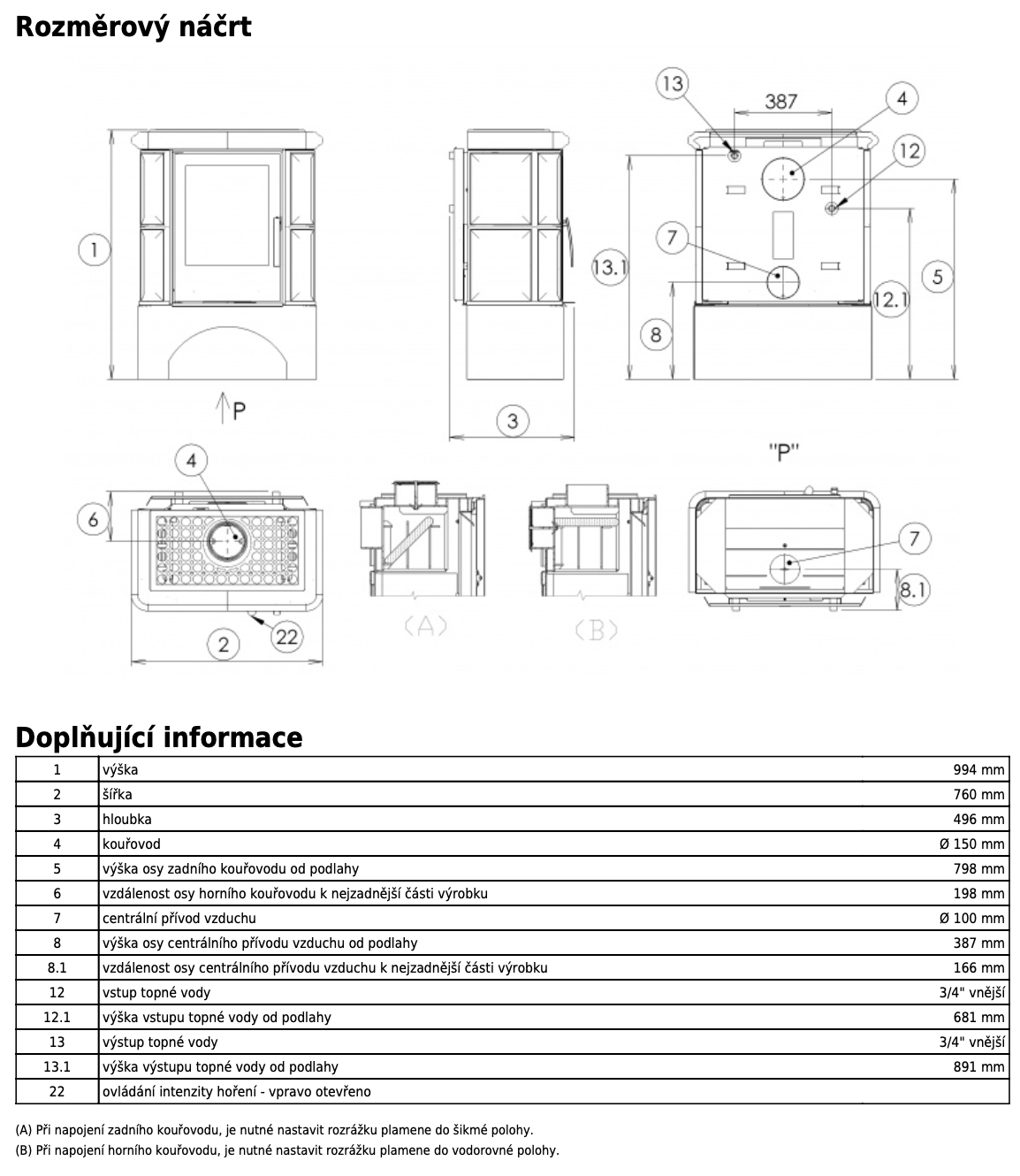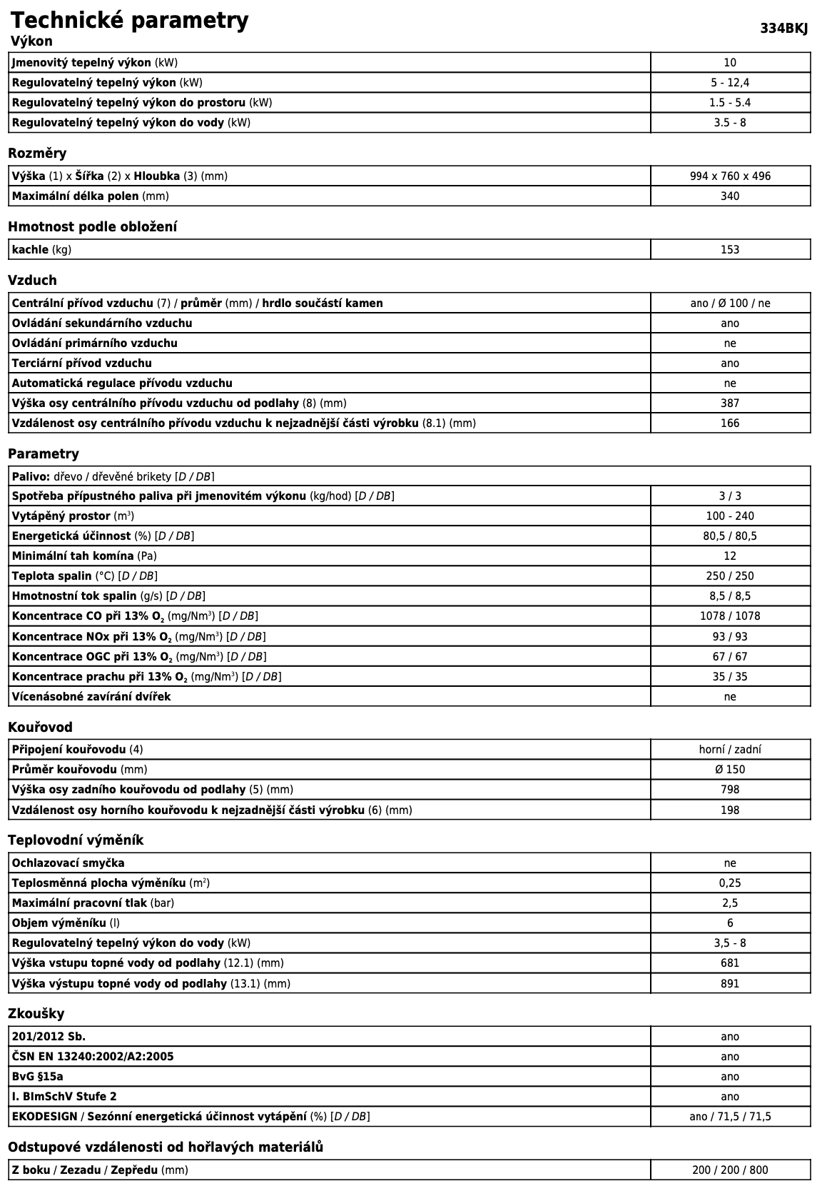 | Palivo: | kusové dřevo, dřevěné brikety |