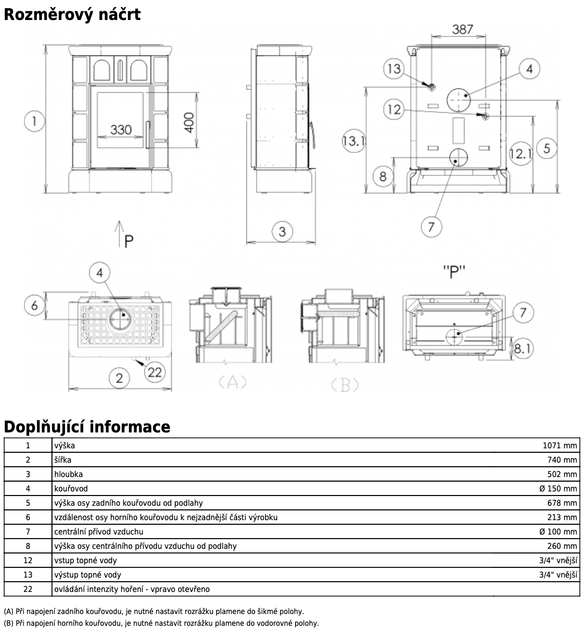 Při provozu a instalaci kamen je nutno se řídit následujícími pokyny. Celkový výkon krbových kamen s teplovodním výměníkem je rozdělen na tepelný tok do místnosti a tepelný tok do vody, viz technický list (TL) daného typu kamen.