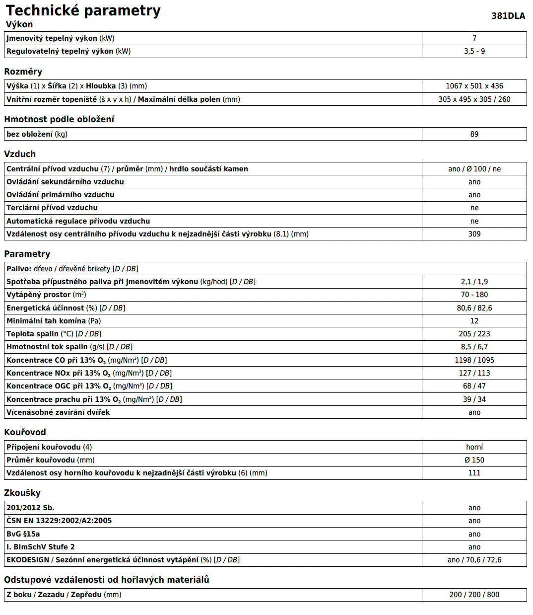 | Palivo: | kusové dřevo, dřevěné brikety |