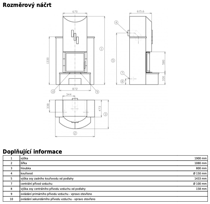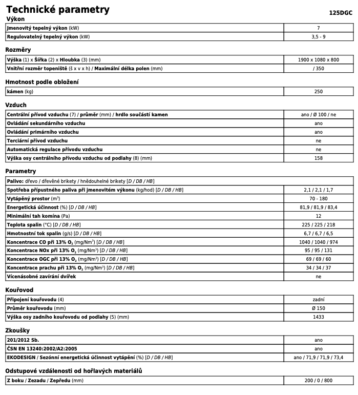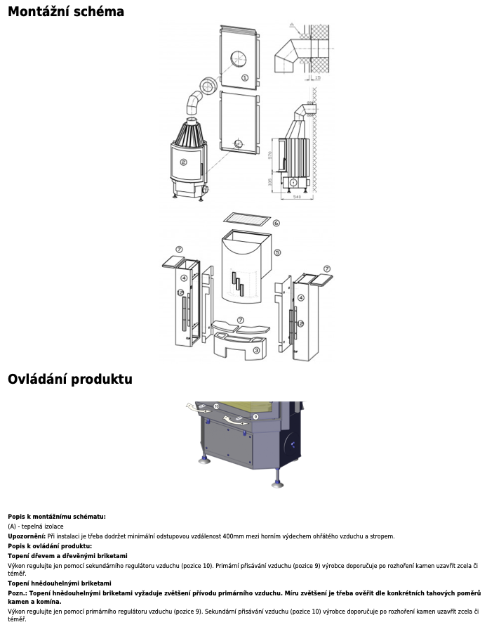 | Palivo: | kusové dřevo, dřevěné brikety |