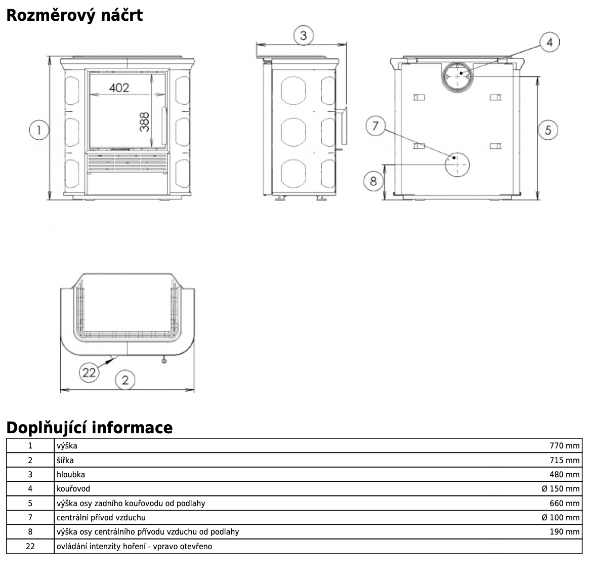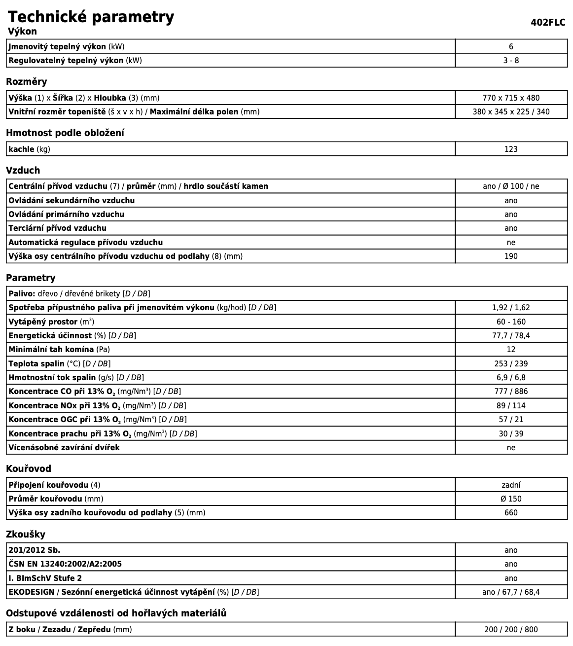 | Průměr kouřovodu: | 150 mm |
