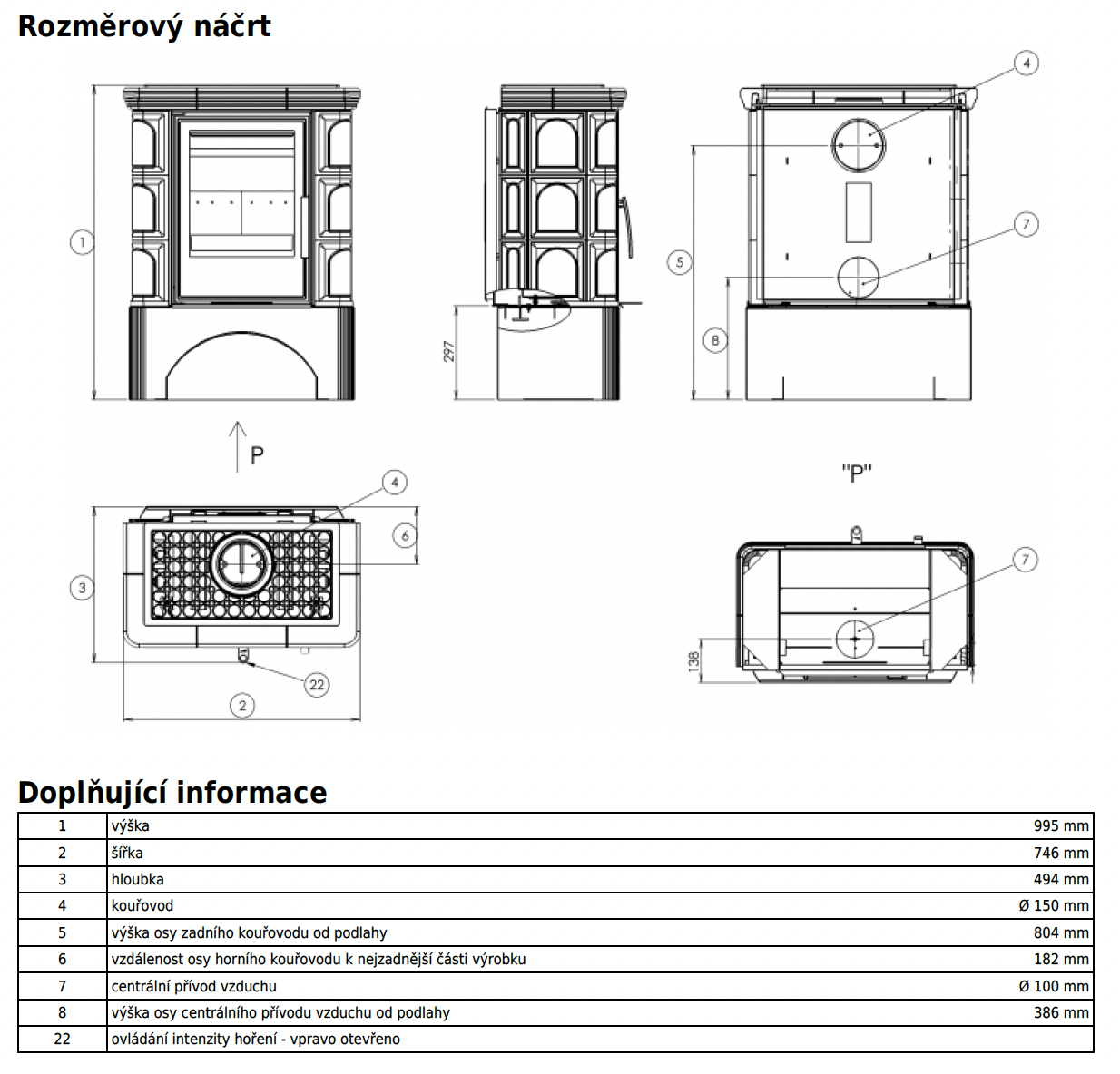 | Průměr kouřovodu: | 150 mm |
