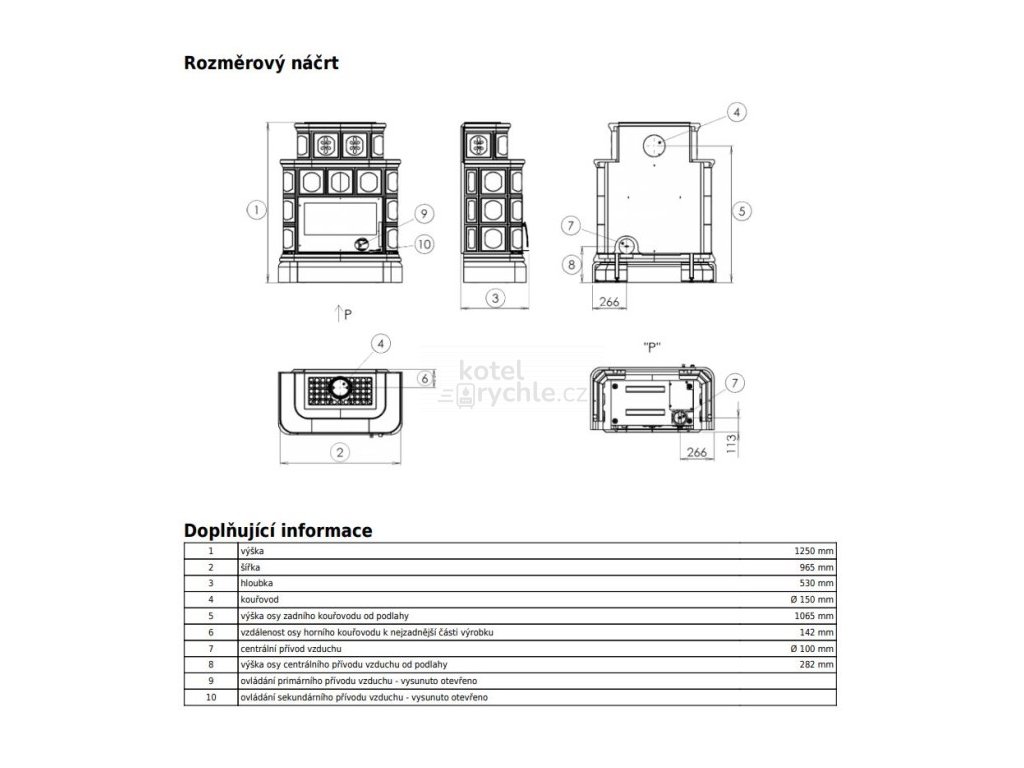 | Palivo: | kusové dřevo, dřevěné brikety |