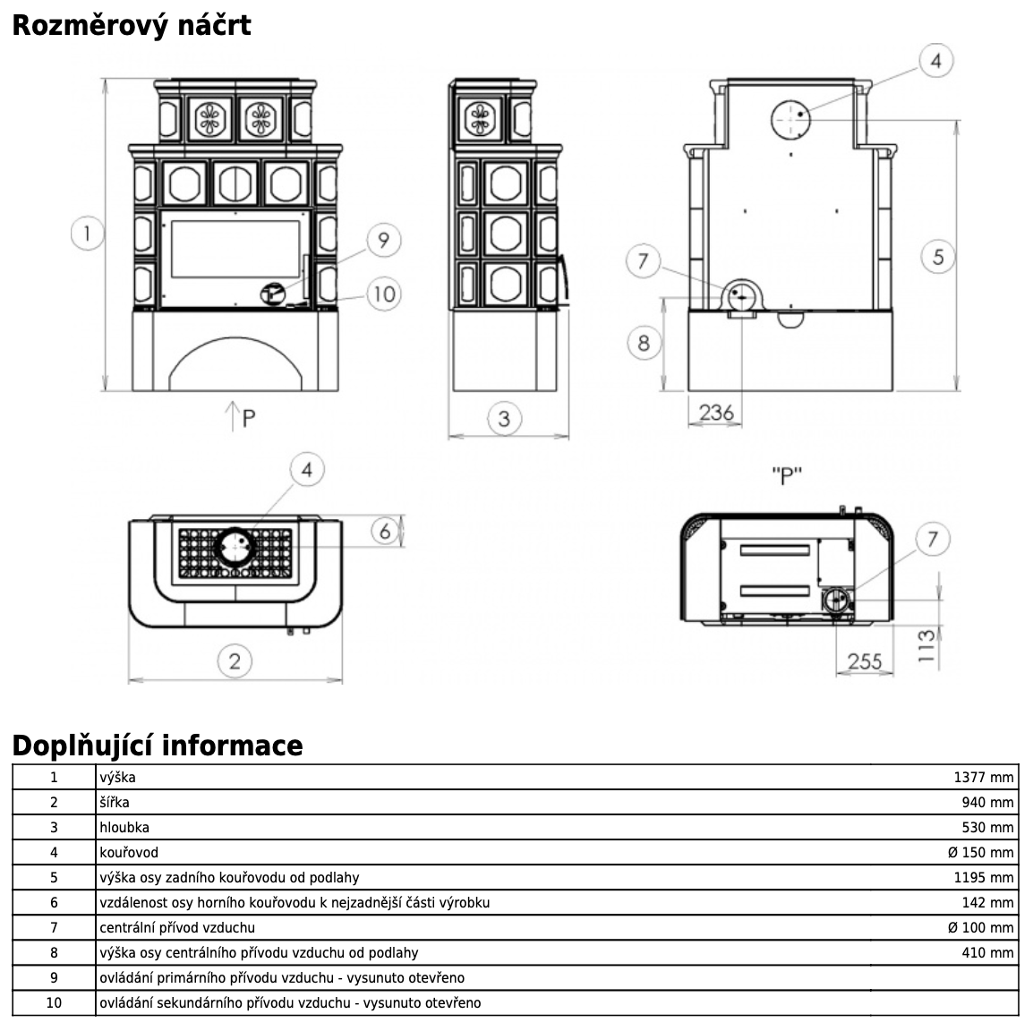 | Palivo: | kusové dřevo, dřevěné brikety |