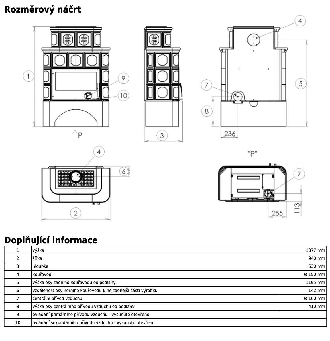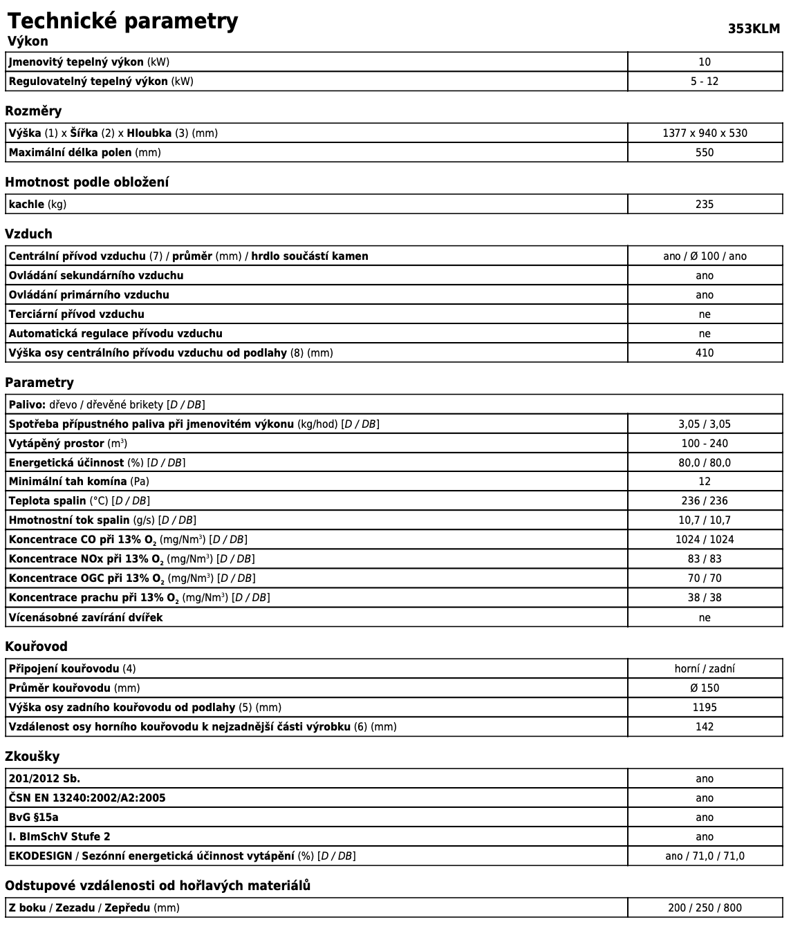 | Palivo: | kusové dřevo, dřevěné brikety |