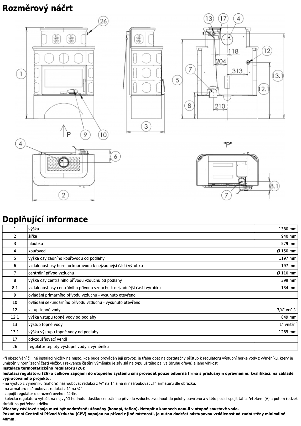 Při provozu a instalaci kamen je nutno se řídit následujícími pokyny. Celkový výkon krbových kamen s teplovodním výměníkem je rozdělen na tepelný tok do místnosti a tepelný tok do vody, viz technický list (TL) daného typu kamen.