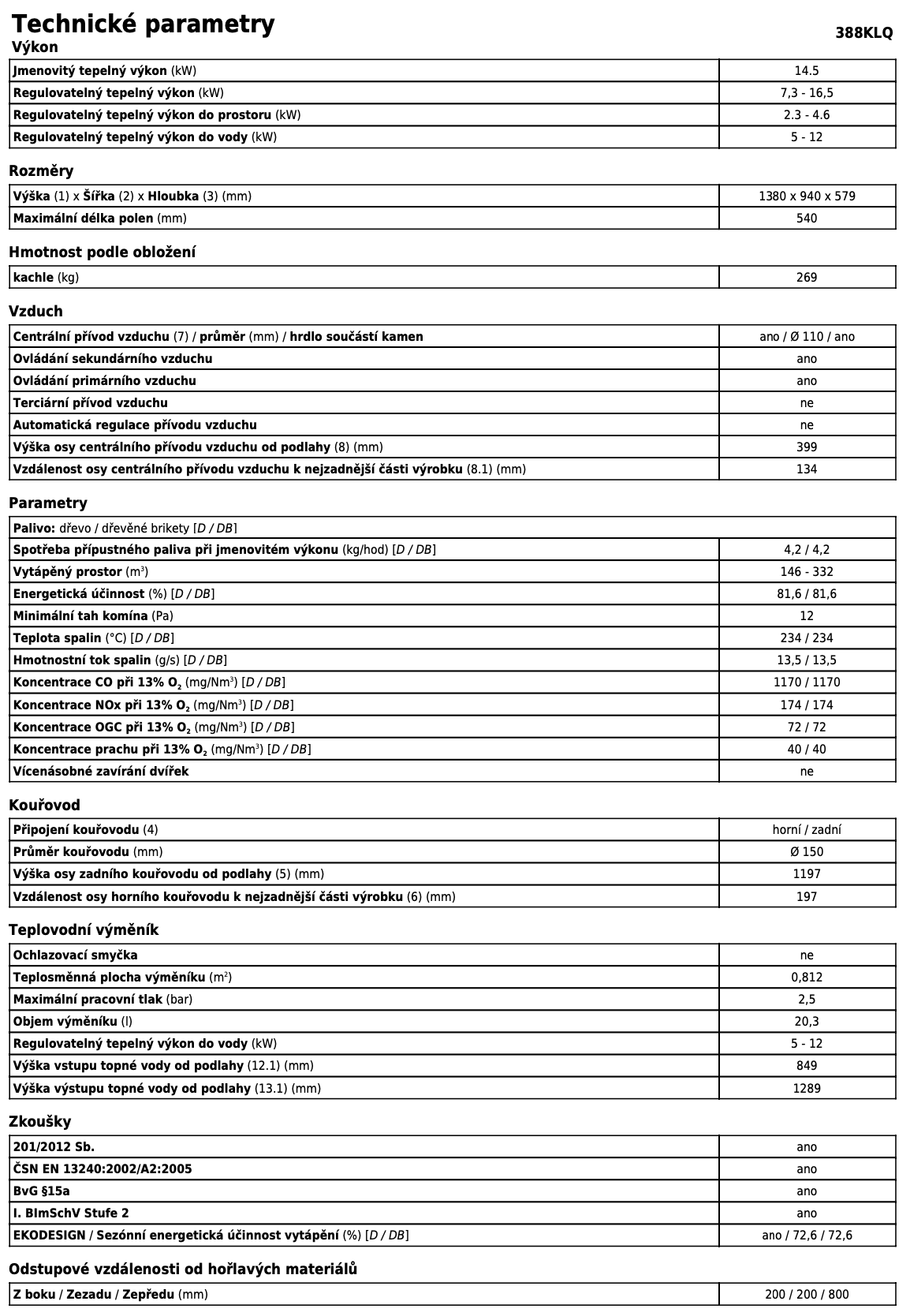 | Palivo: | kusové dřevo, dřevěné brikety |