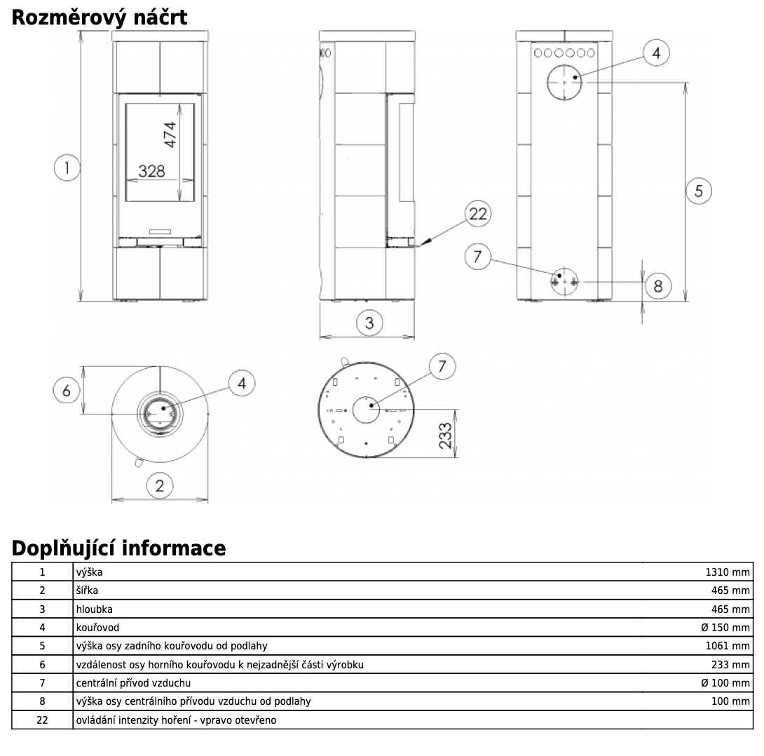 | Palivo: | kusové dřevo, dřevěné brikety |
