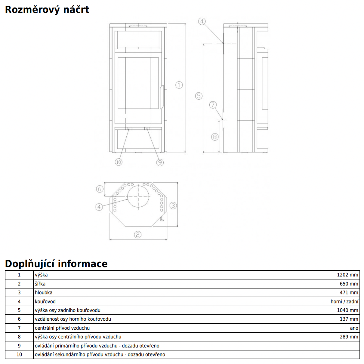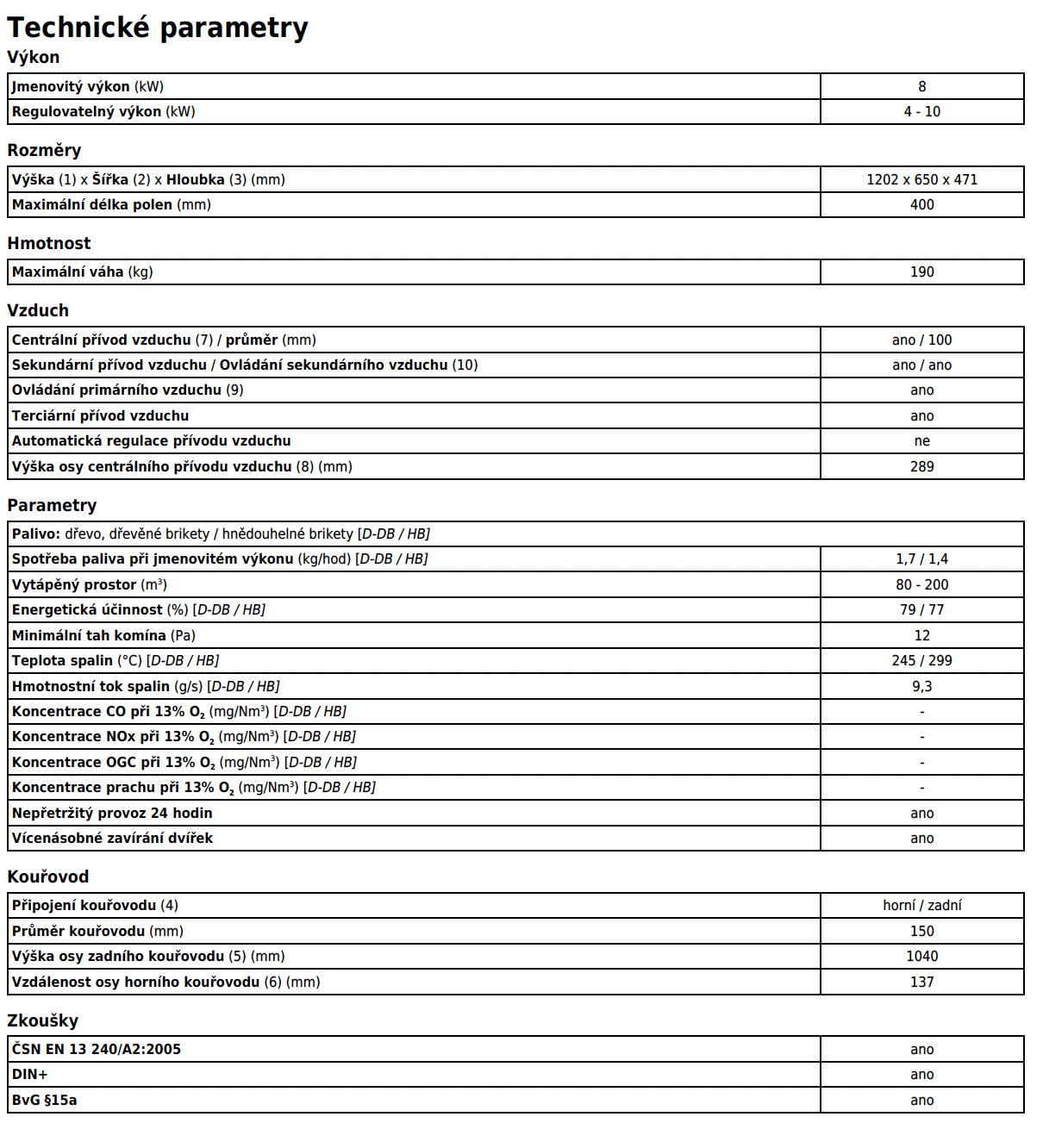 | Palivo: | kusové dřevo, dřevěné brikety |