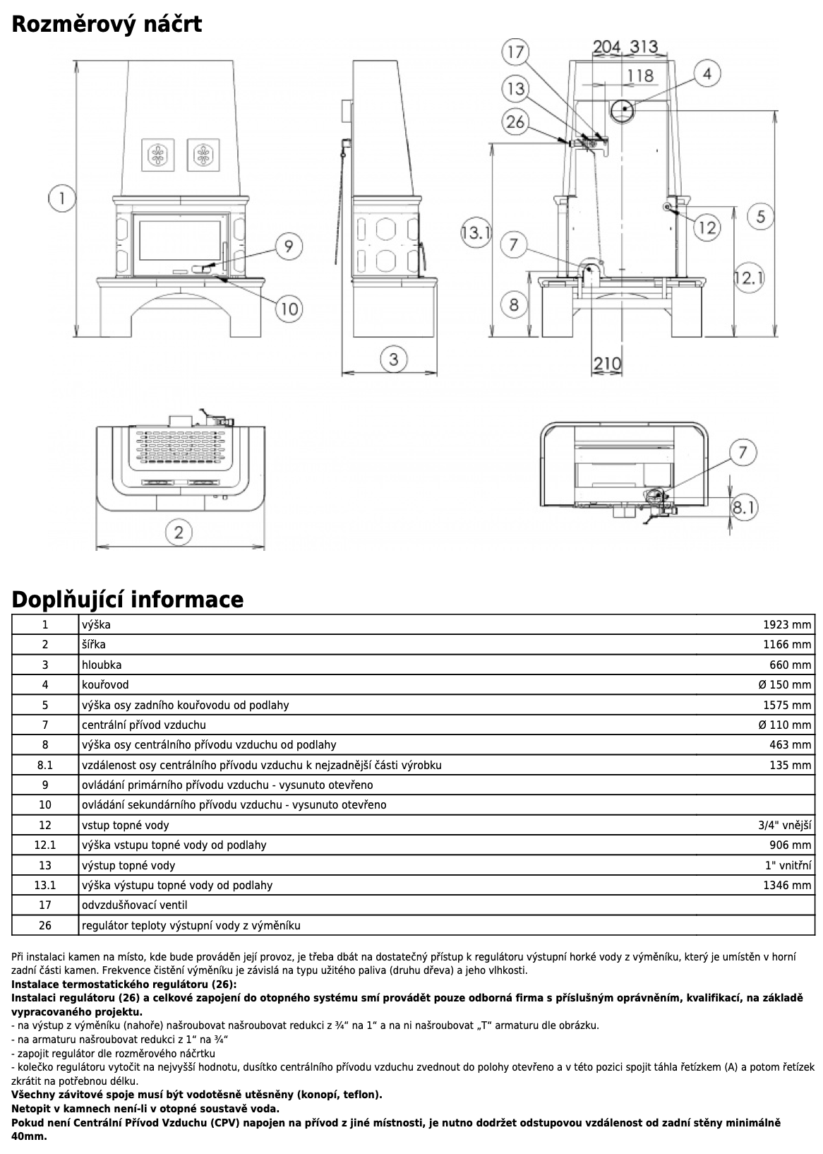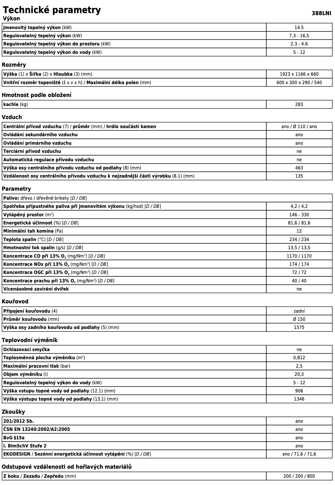 | Průměr kouřovodu: | 150 mm |