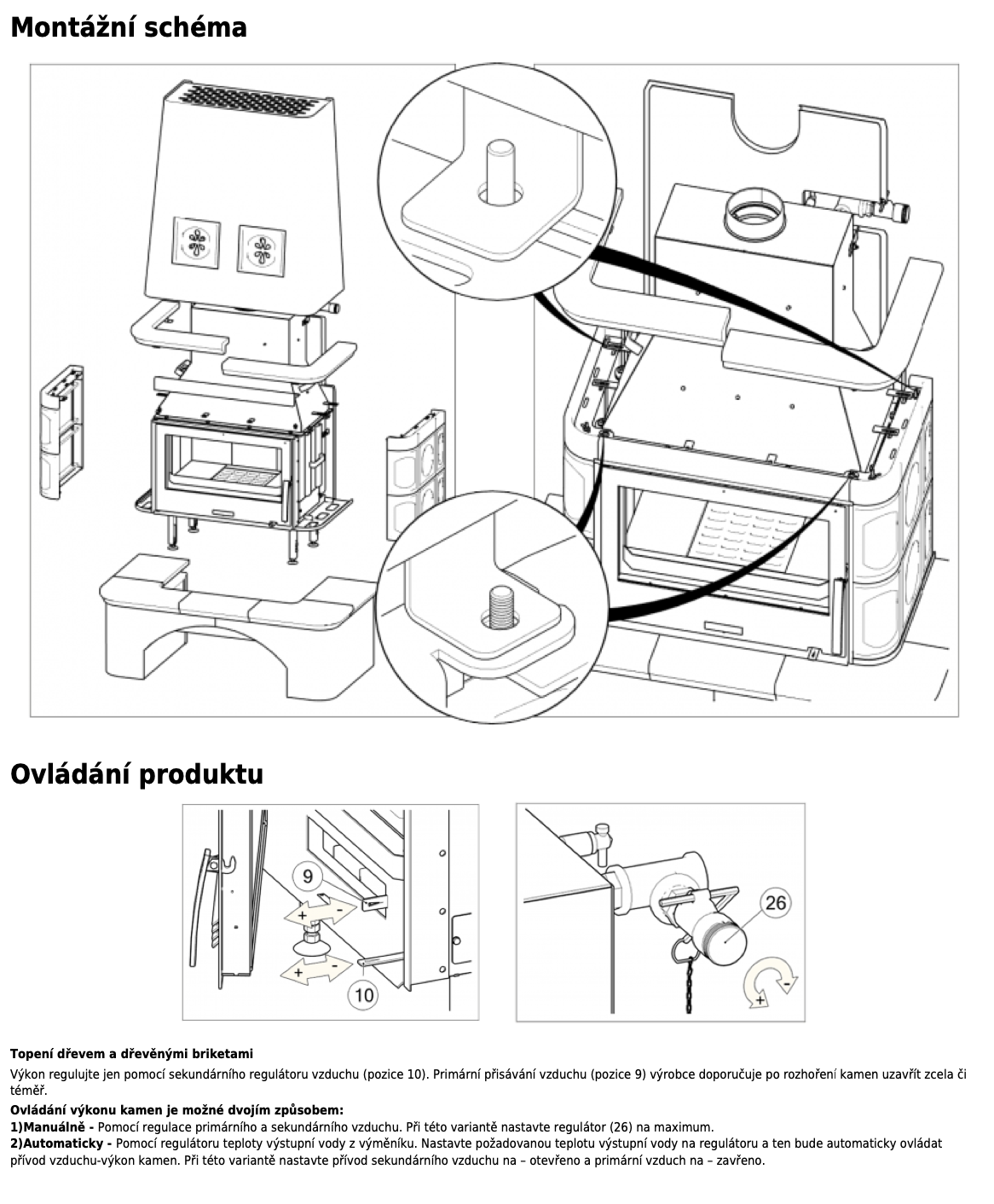 | Palivo: | kusové dřevo, dřevěné brikety |