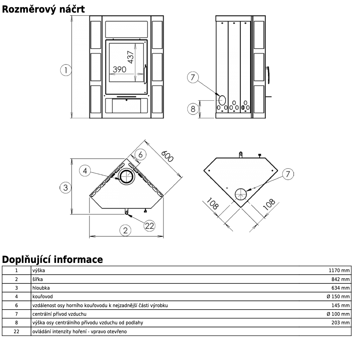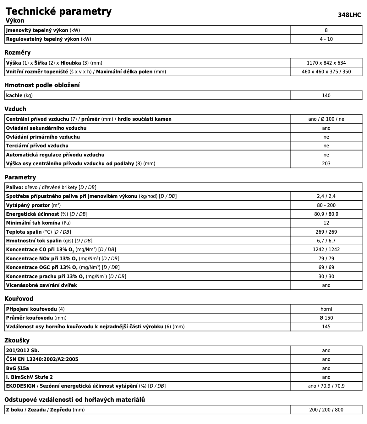 | Palivo: | kusové dřevo, dřevěné brikety |