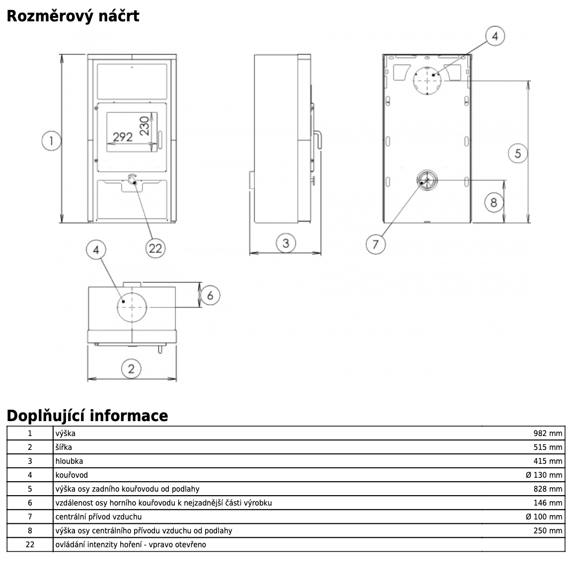 | Palivo: | kusové dřevo, dřevěné brikety |