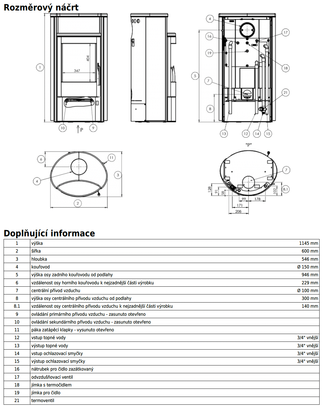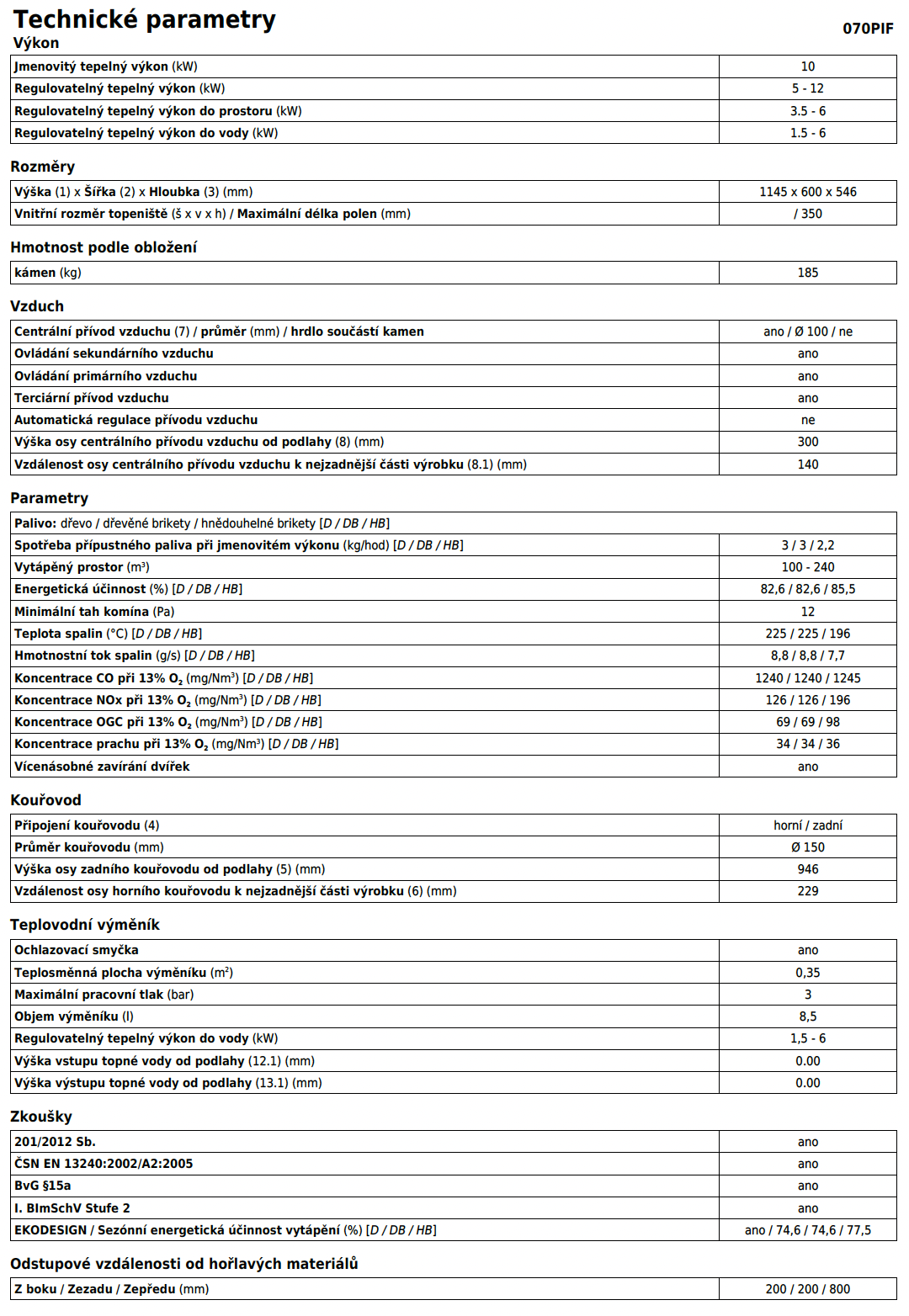 | Průměr kouřovodu: | 150 mm |