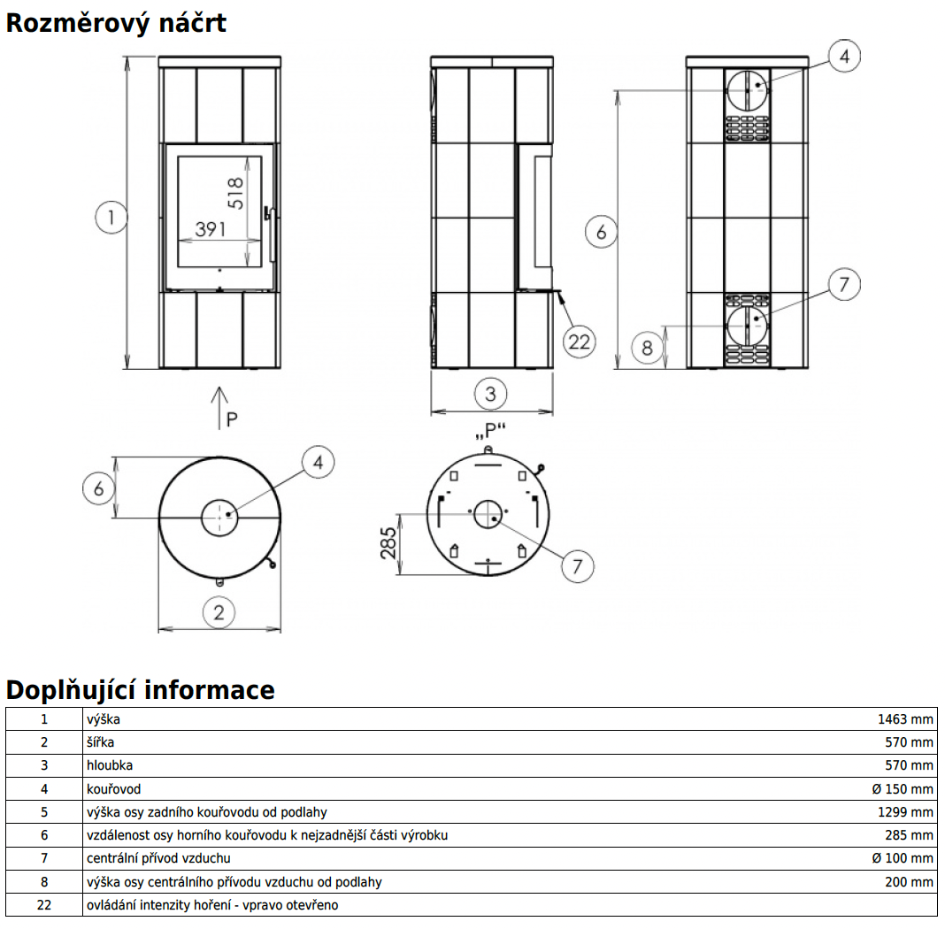 | Palivo: | kusové dřevo, dřevěné brikety |