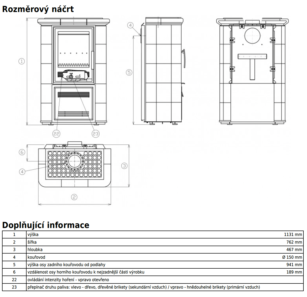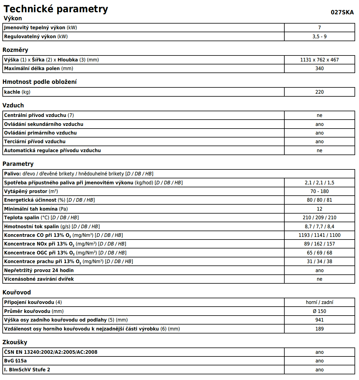 | Palivo: | kusové dřevo, dřevěné brikety |
