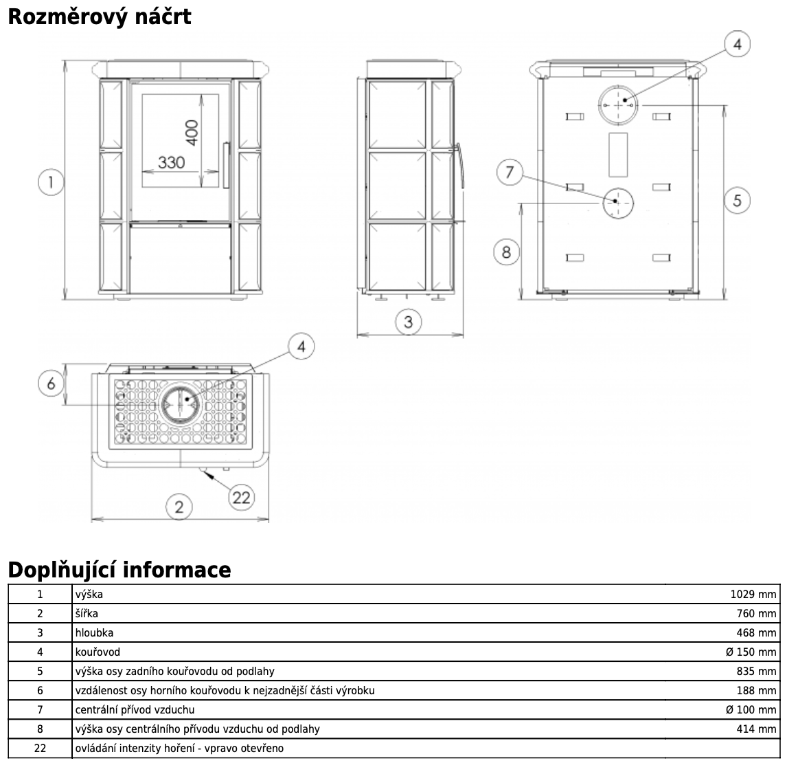 | Palivo: | kusové dřevo, dřevěné brikety |