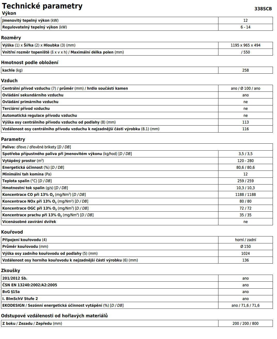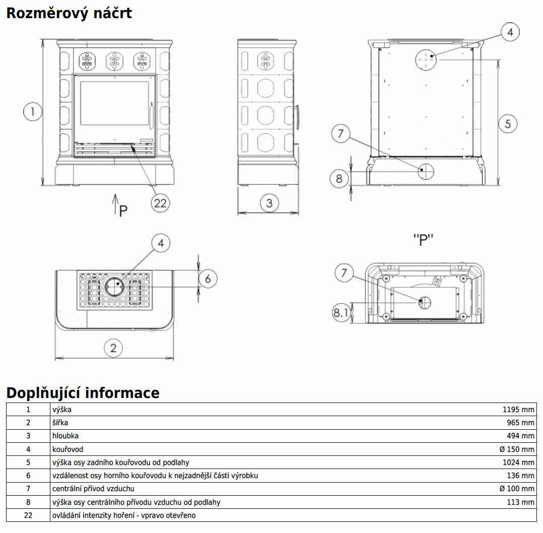 | Průměr kouřovodu: | 150 mm |