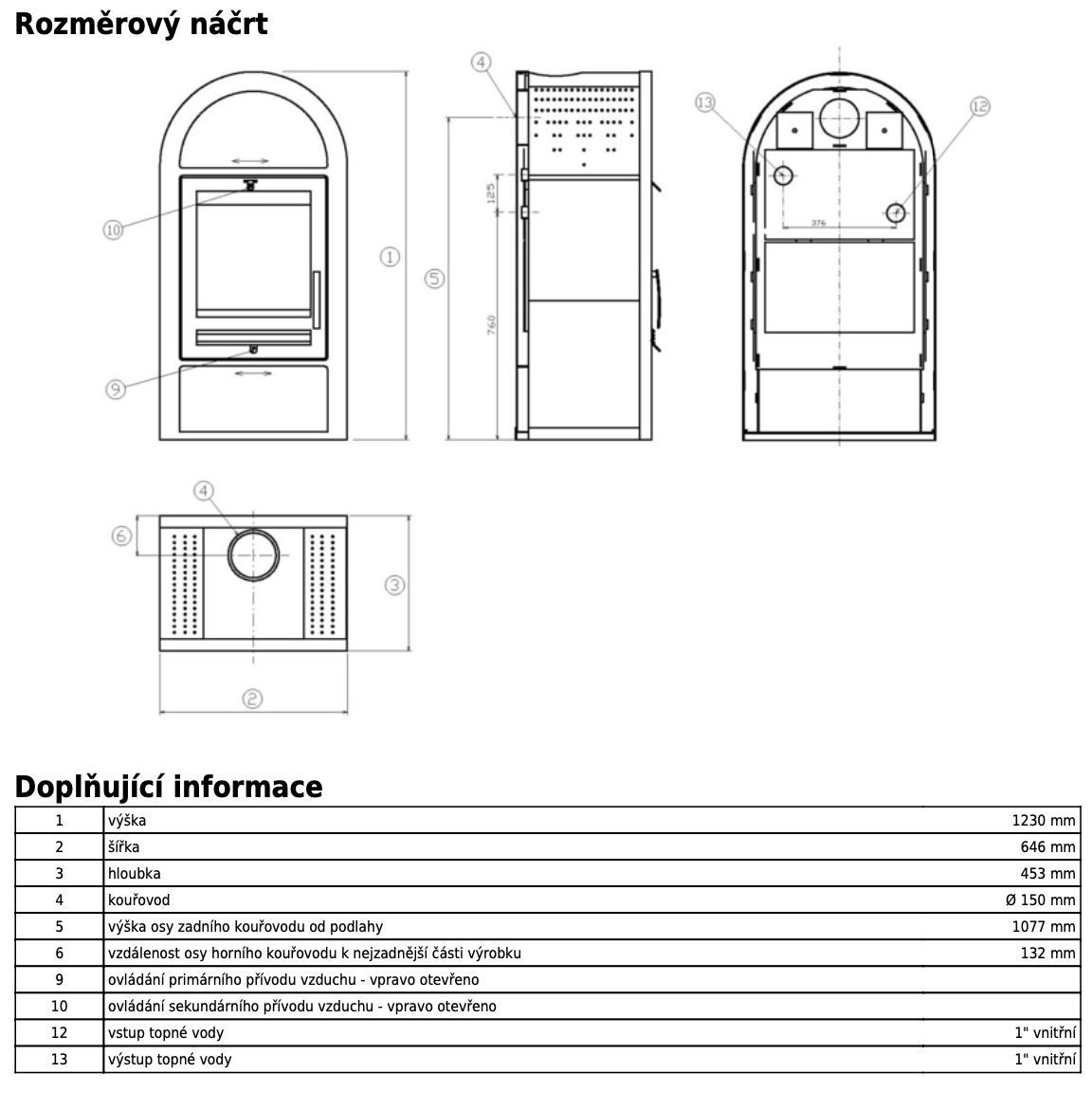 | Palivo: | kusové dřevo, dřevěné brikety |