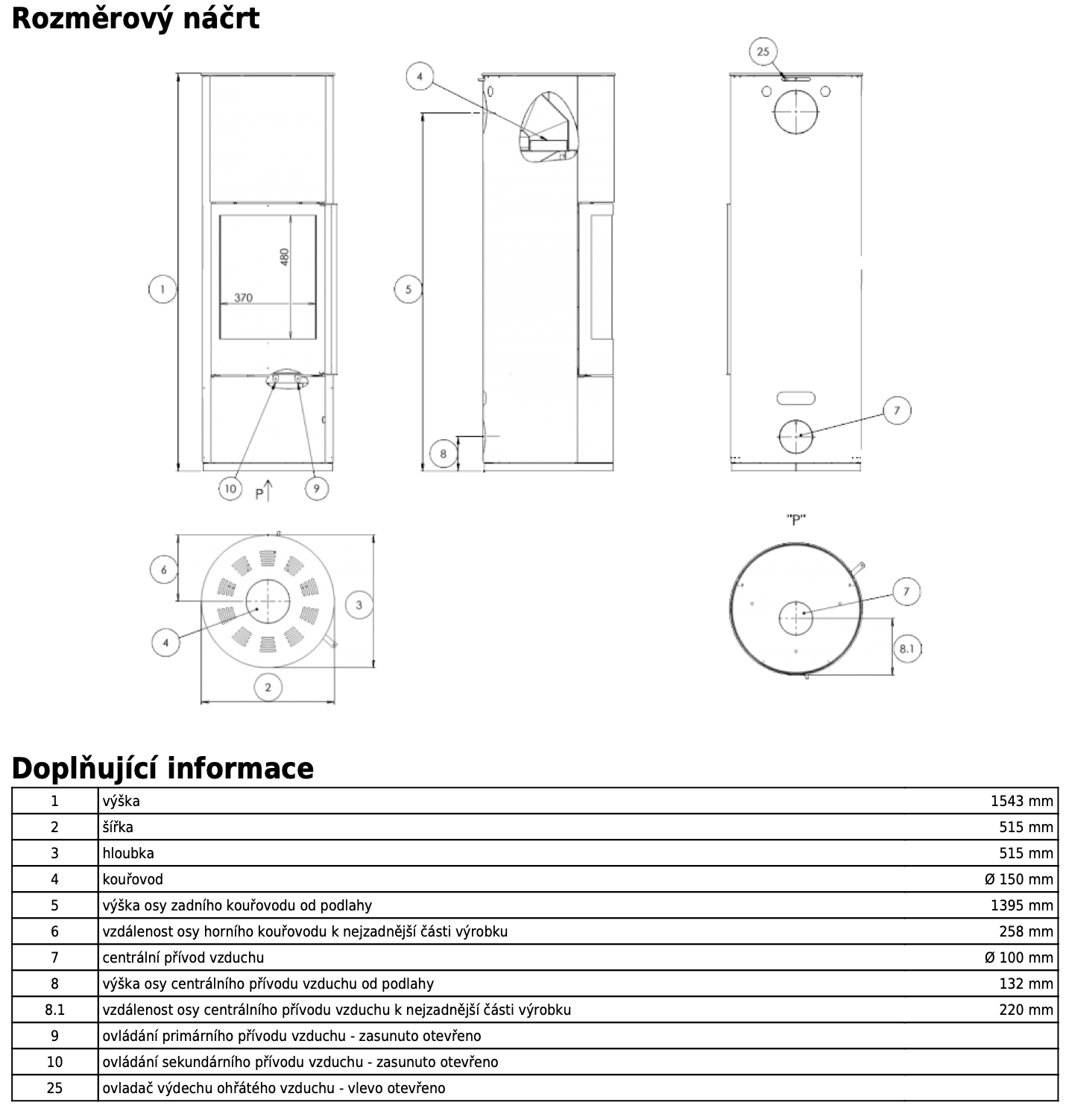 | Palivo: | kusové dřevo, dřevěné brikety |