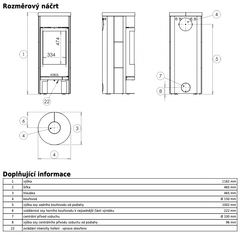 | Palivo: | kusové dřevo, dřevěné brikety |