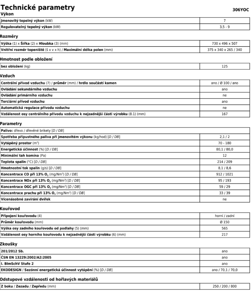 | Průměr kouřovodu: | 150 mm |