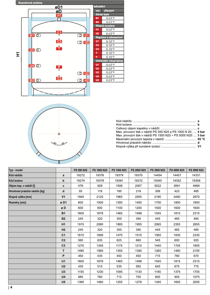 Vysoká kapacita akumulace: Model PS 5000 N25 disponuje vysokou kapacitou pro efektivní shromažďování a uchovávání tepla z různých zdrojů, což přispívá k optimálnímu využití energie.