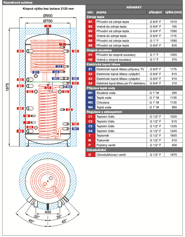Střední kapacita: S kapacitou 750 litrů je tato akumulační nádrž vhodná pro širokou škálu aplikací, od menších rodinných domů po střední komerční objekty. Nabízí dostatek kapacity pro efektivní akumulaci tepla.