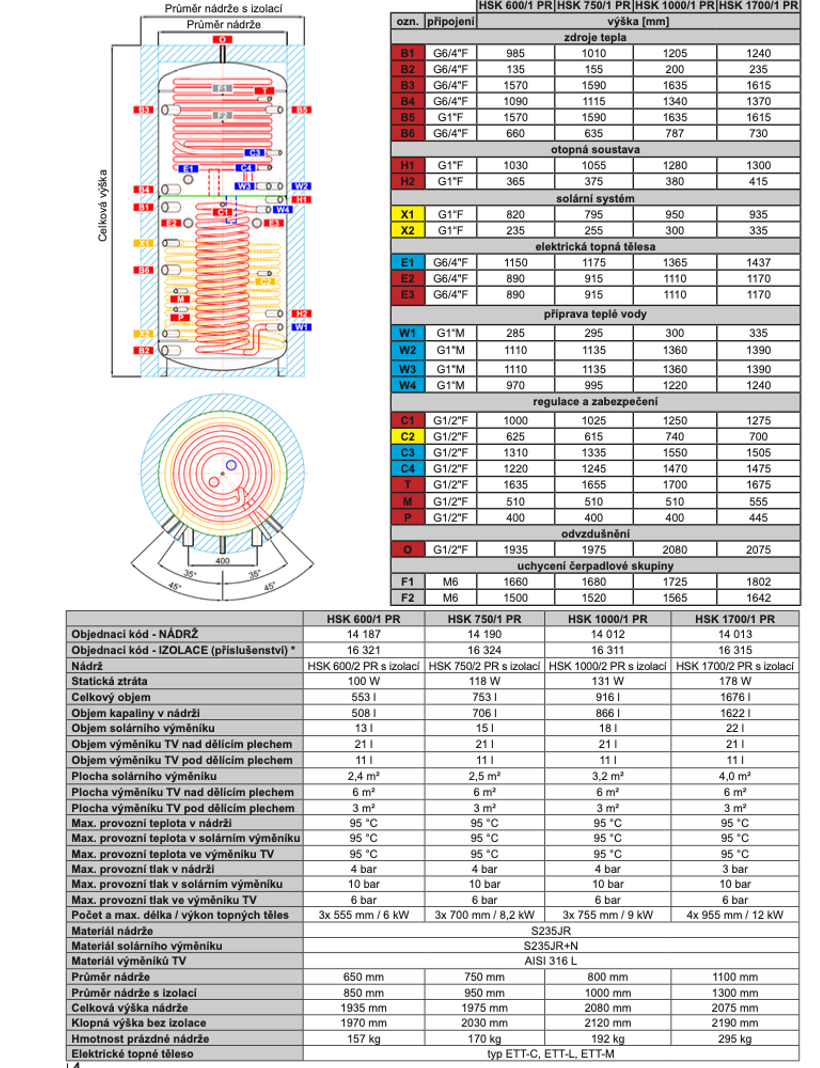 Akumulační nádrž s nerezovým výměníkem TV HSK 750 PR: