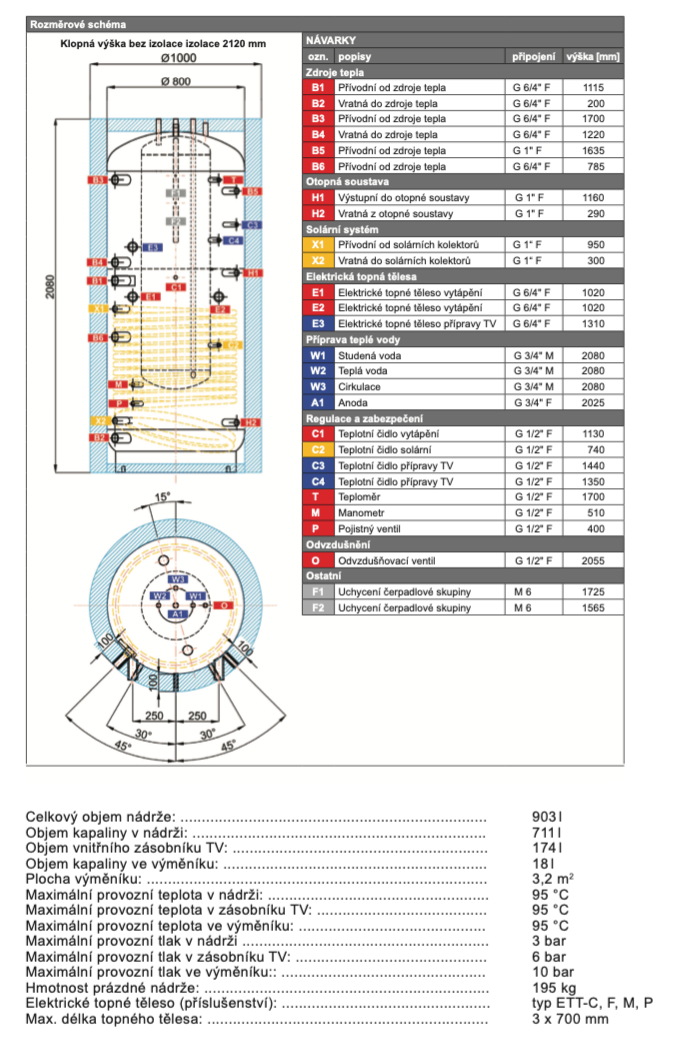 Optimalizovaná kapacita: S kapacitou 1000 litrů pro akumulační nádrž a 200 litrů pro zásobník je toto zařízení vhodné pro středně velké až větší projekty, kde je potřebí efektivní akumulace tepla z různých zdrojů energie. Poskytuje dostatek úložného prostoru pro teplo.