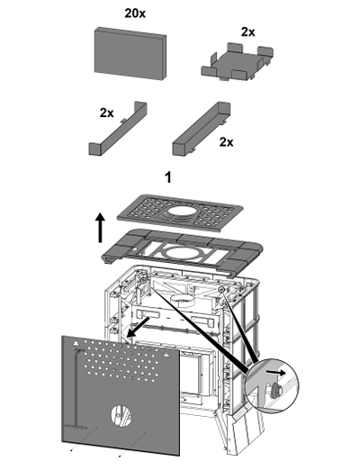 ROMOTOP MAMMOTH akumulační sada 300x300x296mm, horní, pro krbové vložky s pr. odkouření 150 mm