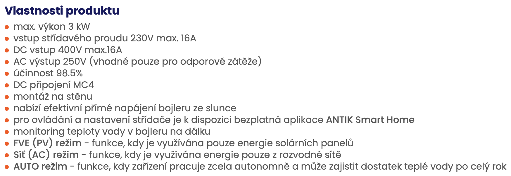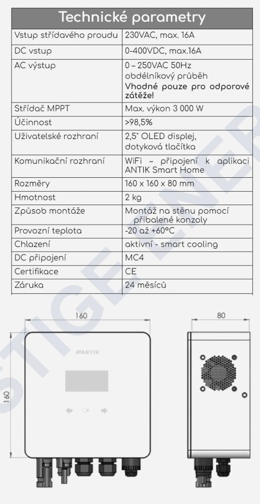 ANTIK PWH 01 V3 solární střídač 3 kW