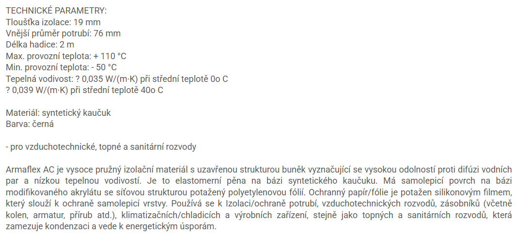 | Označení izolace: | ARMAFLEX ACE |