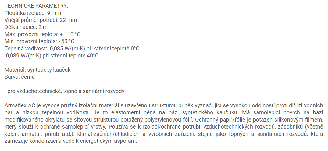 ARMACELL ARMAFLEX AC izolace potrubí 9x22mm
