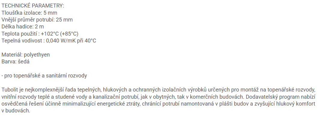 ARMACELL TUBOLIT DG izolace potrubí 5x25mm
